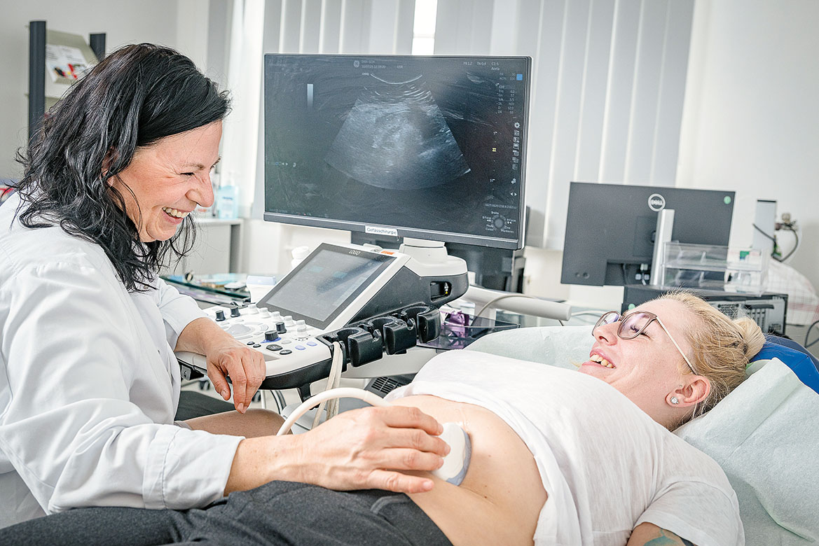 Via Ultraschall überprüft Prof. Dr. Katja Schlosser die Gefäße im Bauchraum einer Patientin.